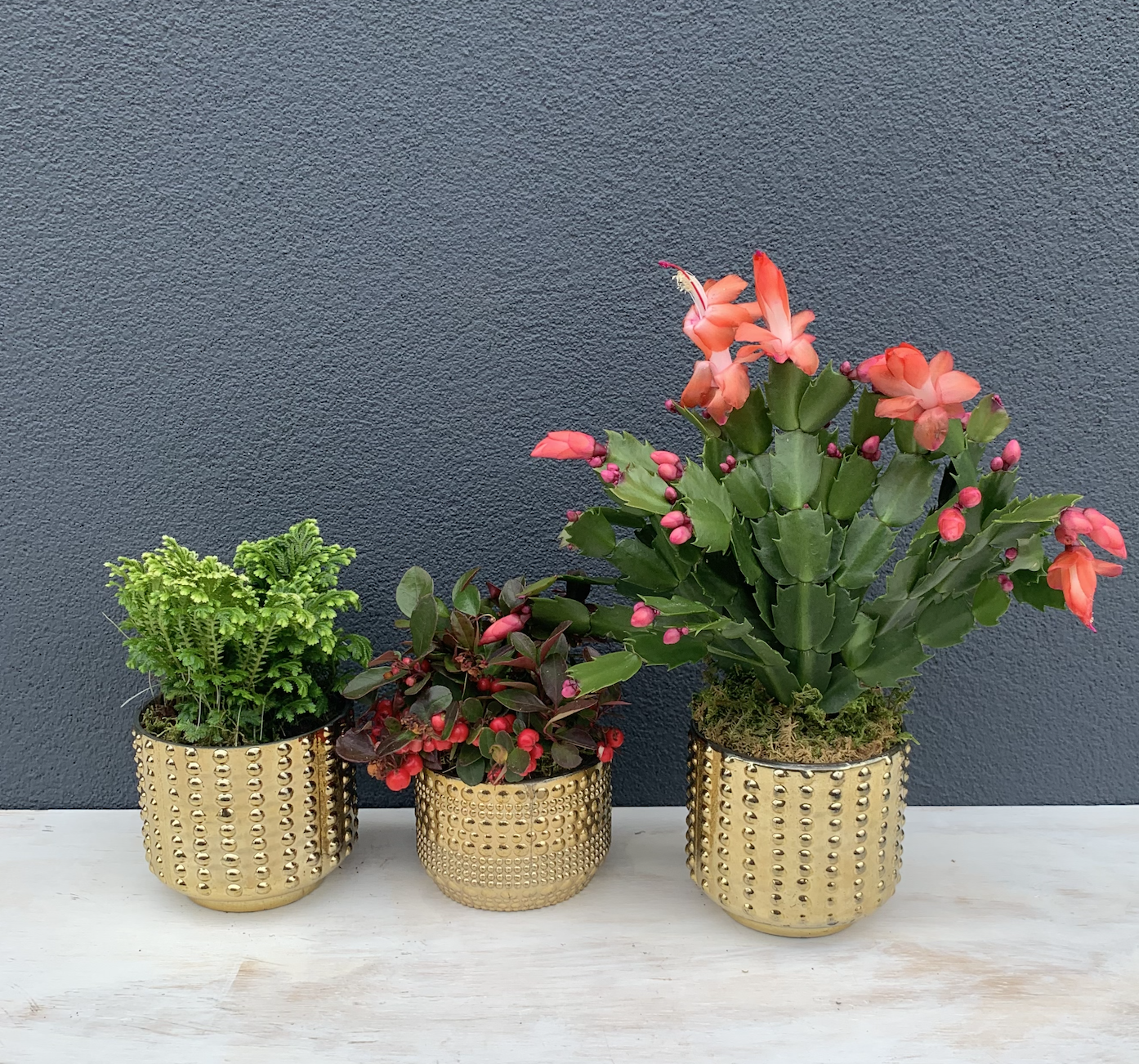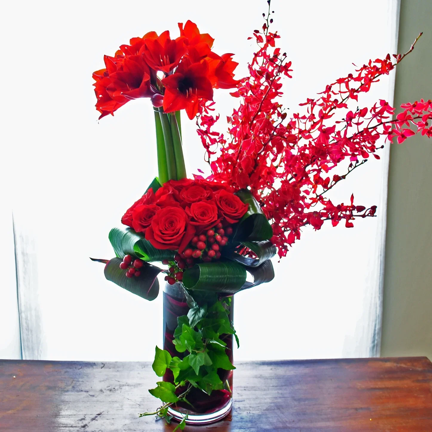 Embrace evergreens, amaryllis, paperwhites, and designs in white, silver, and deep red that maintain professional appropriateness during the holiday season, then transition to minimalist designs with strong architectural elements that suit the clean-slate feeling of a new year
