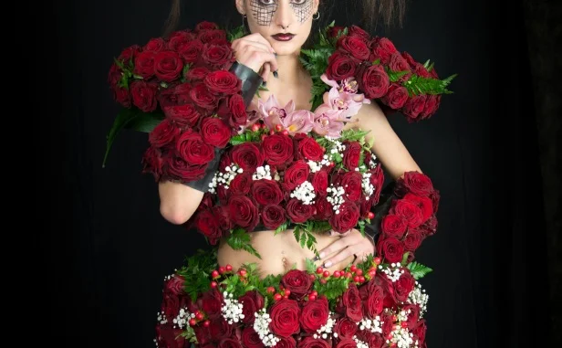 In coming up with his showcase for the event, talented floral designer Thomas Rinaldi initially toyed with the idea of creating a very colorful dress with an assortment of different colored flowers. He then decided to work around a Gothic theme, which automatically meant the color black to show the unique mysteriousness yet captivating nature of Gothicism. To help him bring this out effectively, he needed a good quality and beautiful red rose. That is when he immediately knew Porta Nova Red Naomi would come in handy.
