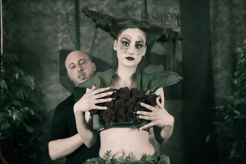 “Gothic Flower Design” is the name of Thomas Rinaldi’s live showcase. He had to have everything perfect, so he contacts model Alice Contino, since Thomas knew she would work perfectly in bringing out the stylish elegance he was gunning for. His Glam-Team includes the company Glamour Valentina and Samantha Pitti for hair and make-up and Loredana Mirlisenna for a very well thought-out Nail Art job. Porta Nova Red Naomi roses are ready… courtesy of toes Nature Ltd, Lodato Brothers of Delia, who are firm believers in the project.